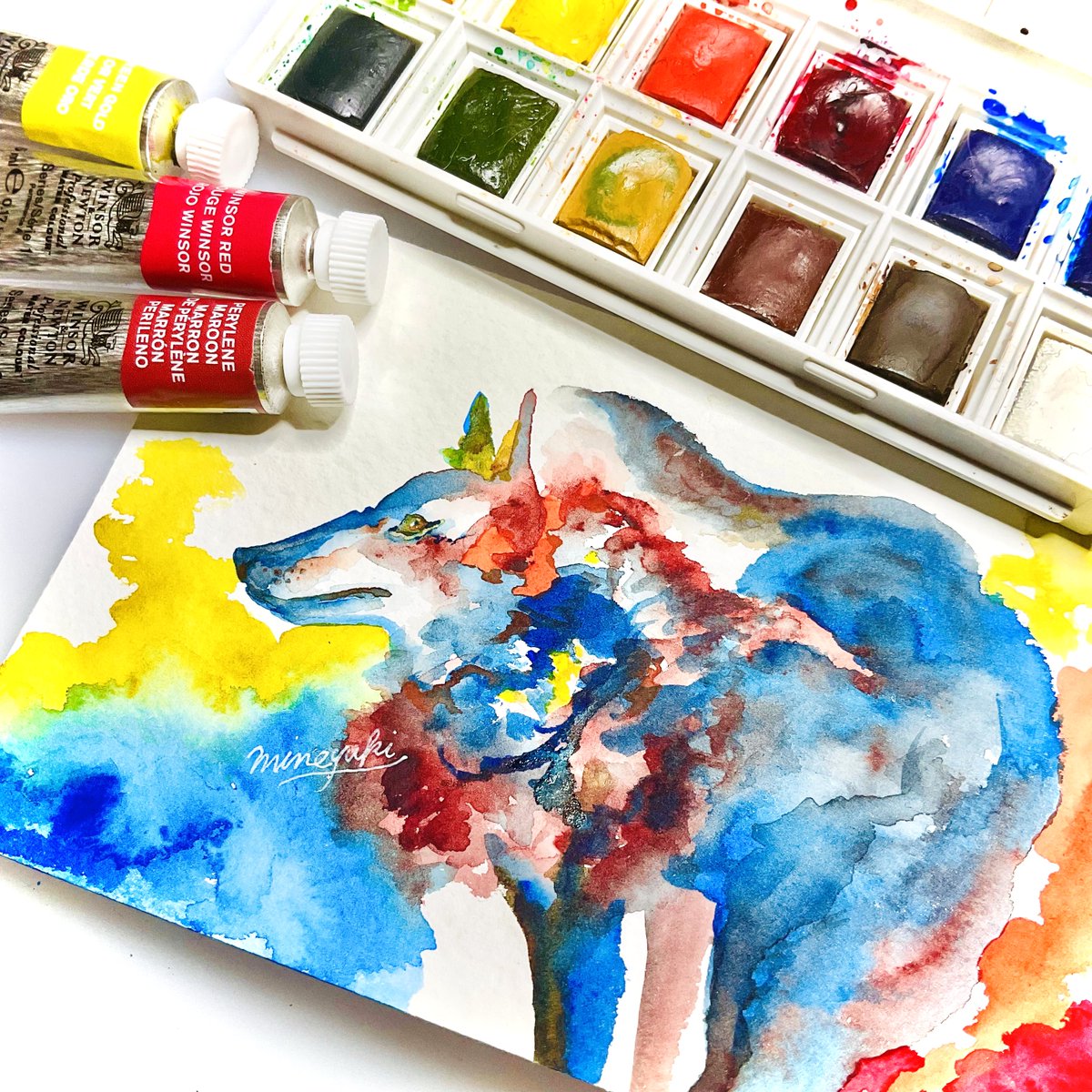 #アナログ絵で魅せてみよ 先日、W&Nプロフェッショナル水彩紙のサンプルをいただいたのでW&N縛りで一枚🐺 ものすごく描きやすい紙です。そして発色がすごい...! #ウィンザーアンドニュートン #watercolor #透明水彩 @wn_jp