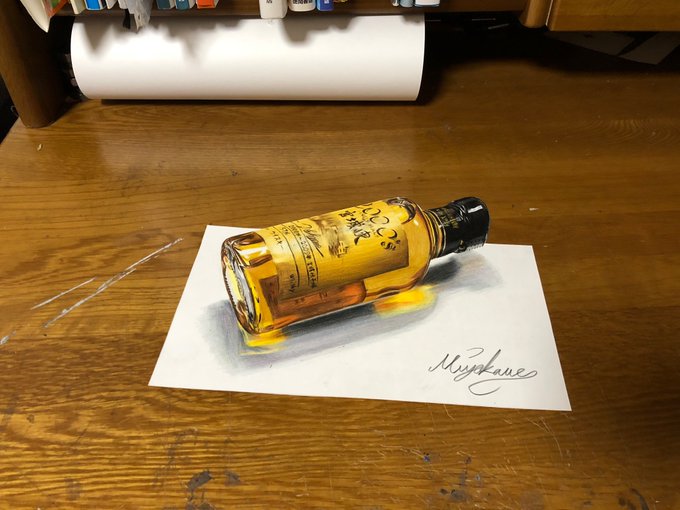 マッカランのボトル。 カウンター席の目の前に置いてあったから描いたけど、飲んではいない。 大体字のあたりに差し掛かった時に 描き出したことを後悔する。 #絵 #イラスト #スケッチ #水彩画 #絵描きさんと繋がりたい #イラスト好きさんと繋がりたい #ウイスキー #マッカラン