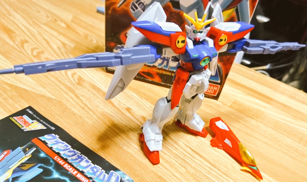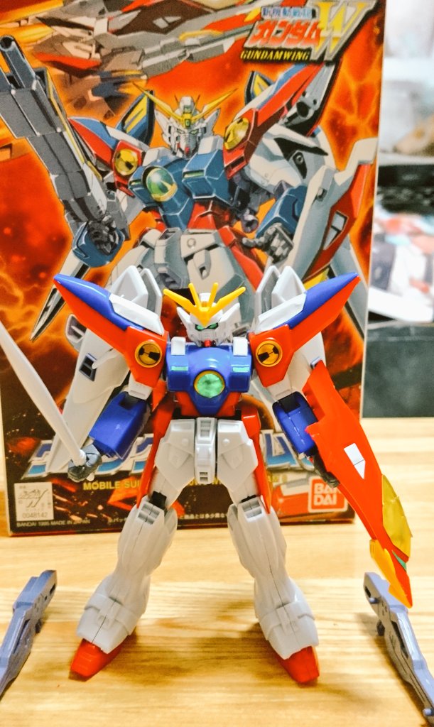 今日の過去写真ー! 1/144『ウイングガンダム0(ゼロ)』! 当時品の完成度の高さよ…。 お値段、作りやすさ、そしてカッコ良さ! これで変形までするし、足のギミックもすごい! ちなみに、4枚目は、今写したよ(過去写真とは!?)! #ガンプラ #ガンダムW #ウイングガンダムゼロ