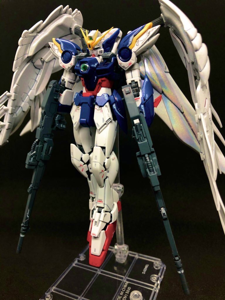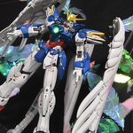 クリアバージョンのウイングゼロEW完成😆🎉🎉 武器のデカールはこれからだけど笑 せっかくなのでブラックライトで光らせてもみました🎵 下の投稿で全体動画も載せておきます( ´∀`) #ガンプラ #ウイングゼロEW #ガンプラ好きな人と繋がりたい