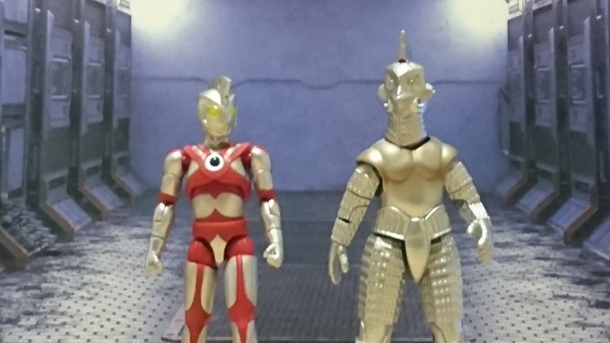 #夜のフィギュア撮影会 お題:フリー A「ウインダム。Zによると別宇宙の君が私に見間違えられたそうだ」 ウインダム「そっすか。昔はセブンに見間違えられたんだよね」 #超動αウルトラマン #フィギュア撮影友の会 #ウルトラマンA #ウインダム