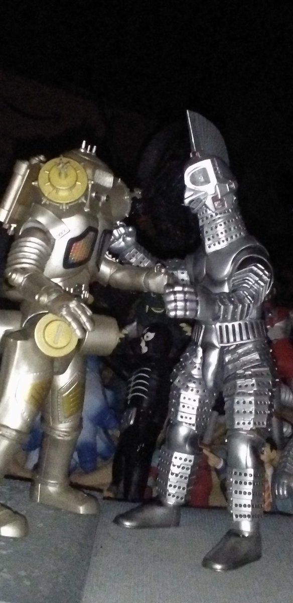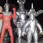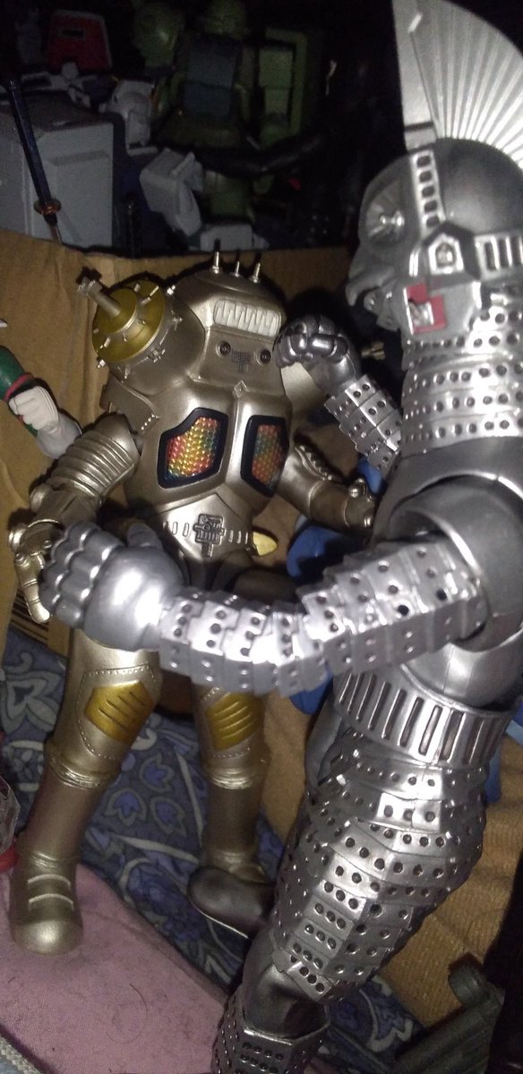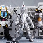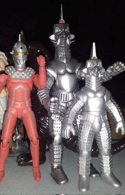 #夜のフィギュア撮影会 テーマ「フリー」 こちら対怪獣特殊空挺機甲隊ストレイジ所属セブンガー並びにウインダム、これより 特殊怪獣対応分遣隊スカード所属アースガロンを援護する! #セブンガー #ウインダム #アースガロン #ウルトラマンZ #ウルトラマンブレーザー