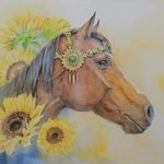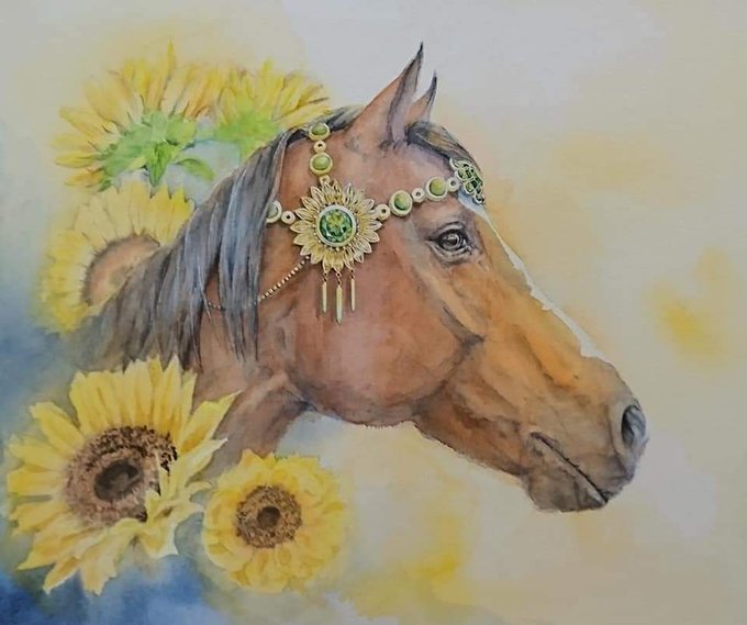 2/20はウインドインハーヘアの誕生日 「誕生花&誕生石」シリーズ8月のモデルをつとめて頂いてます。太陽の象徴ひまわりは彼女に相応しい花だと思っています。 奇しくも対の作品12月の『歓喜の歌』のモデル、ジェンティルドンナと同じ誕生日なんですね。 #ウインドインハーヘア
