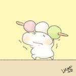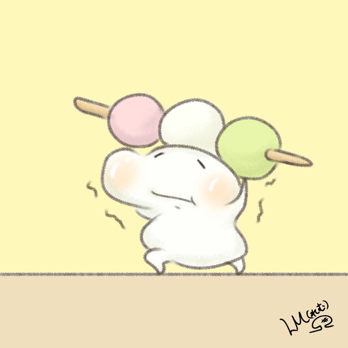 22/11/6 ぐもち〜っ☀️ うぬぬ。。 ウェイトリフティングならぬ 団子リフティング🍡💨 重た過ぎる、そんな時は 食べちゃえばいいよね✊🏻✨ #おもちの日々 #お餅 #ウェイトリフティング #ゆるいイラスト #ART_RT $picRT #kawaii #みんなで楽しむTwitter展覧会 #sns秋の芸術祭2022 #絵本作家 #2コマ