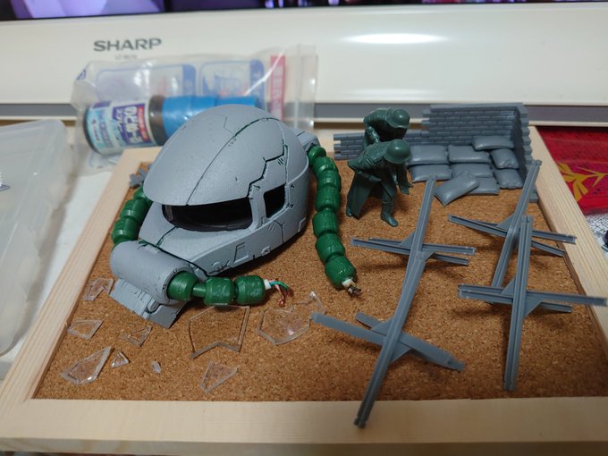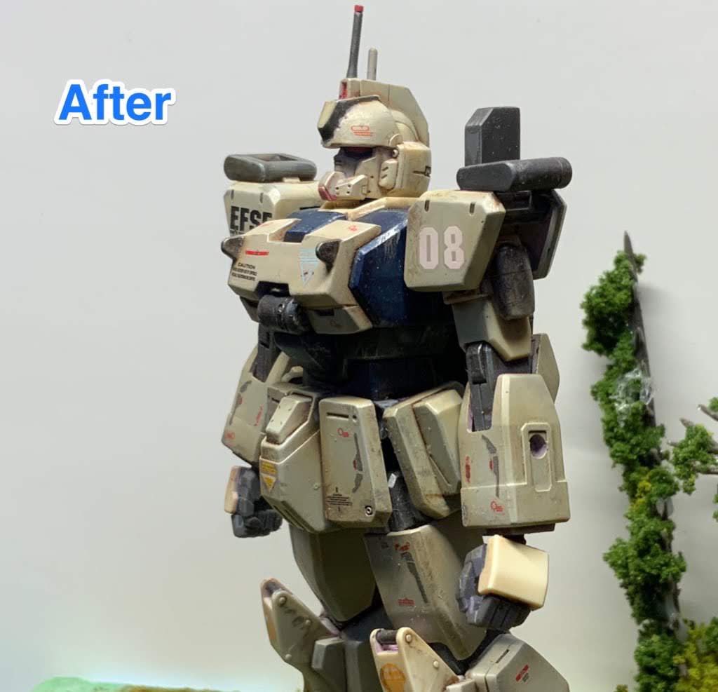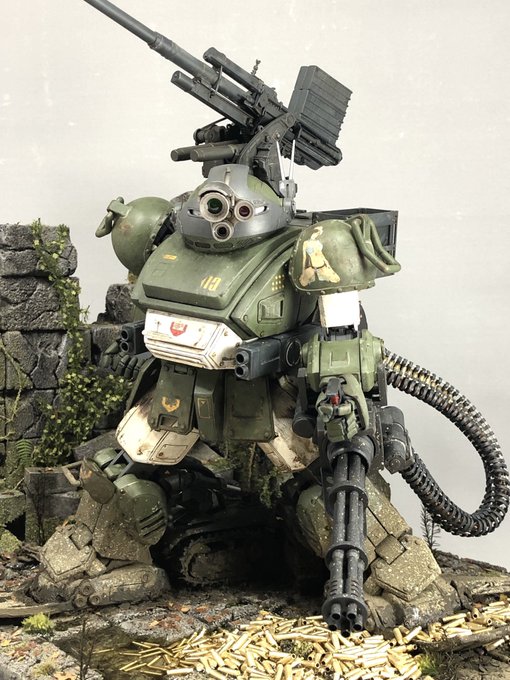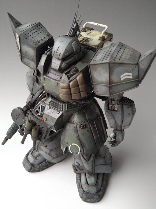 #ウェザリング晒します 足元はガッツリ汚すけど頭など高い位置はあまり汚さないなどメリハリつける。 シチュエーションに合わせて汚し方を変えると運用方法や周りの環境の状況などをうまく伝えられるんじゃないかと思います。