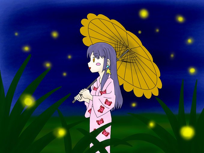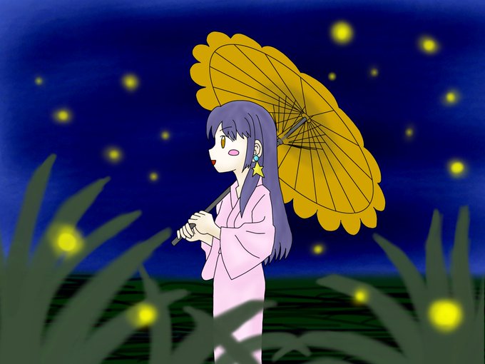 ウェザロアート「ほたる」2作目🍋 雨上がりの蛍さん(某芸人さんが思い浮かぶ字面💦) 私にしてはストレートな作風😅 もう傘は描きたくないです(´•ω•̥`) #ウェザーロイドAiri #ウェザロアート #ウェザーニュースLiVE