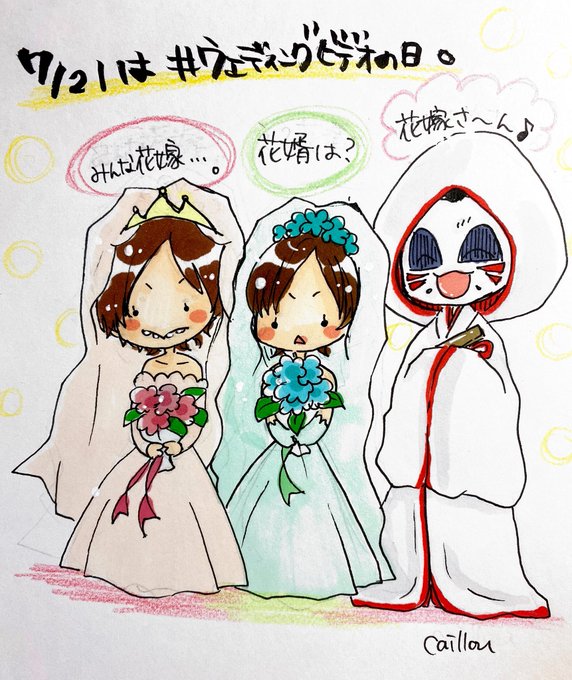 本日のボンバーさんで今日はなんの日は #ウェディングビデオの日📹 ということで、ウェディングビデオっぽい撮影をするところみたいな図にしてみました🙇🏻♀️七夕に引き続き花婿いませんww #イラスト #ファンアート