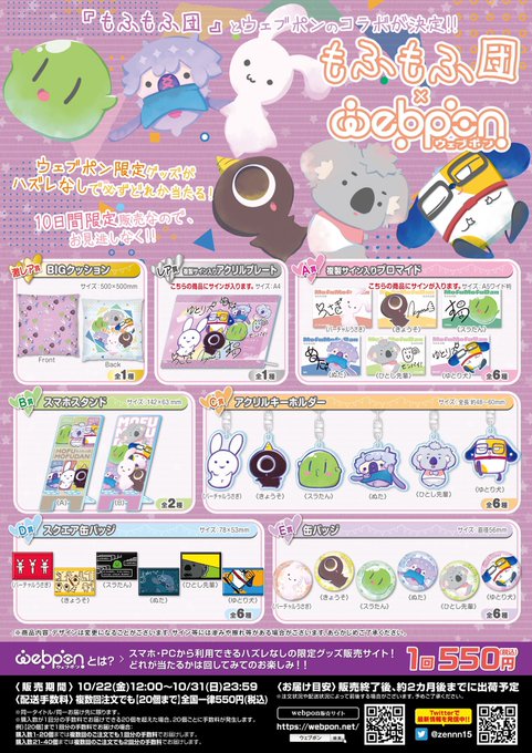 もふもふ団とウェブポンさんとのコラボが決定しました!! 10月22日(金)12時から販売開始です。10日間だけだから絶対にお見逃しなく。 webpon.net/shop/MFMF/plan… #もふもふ団ウェブポン #もふもふ団V #ウェブポン