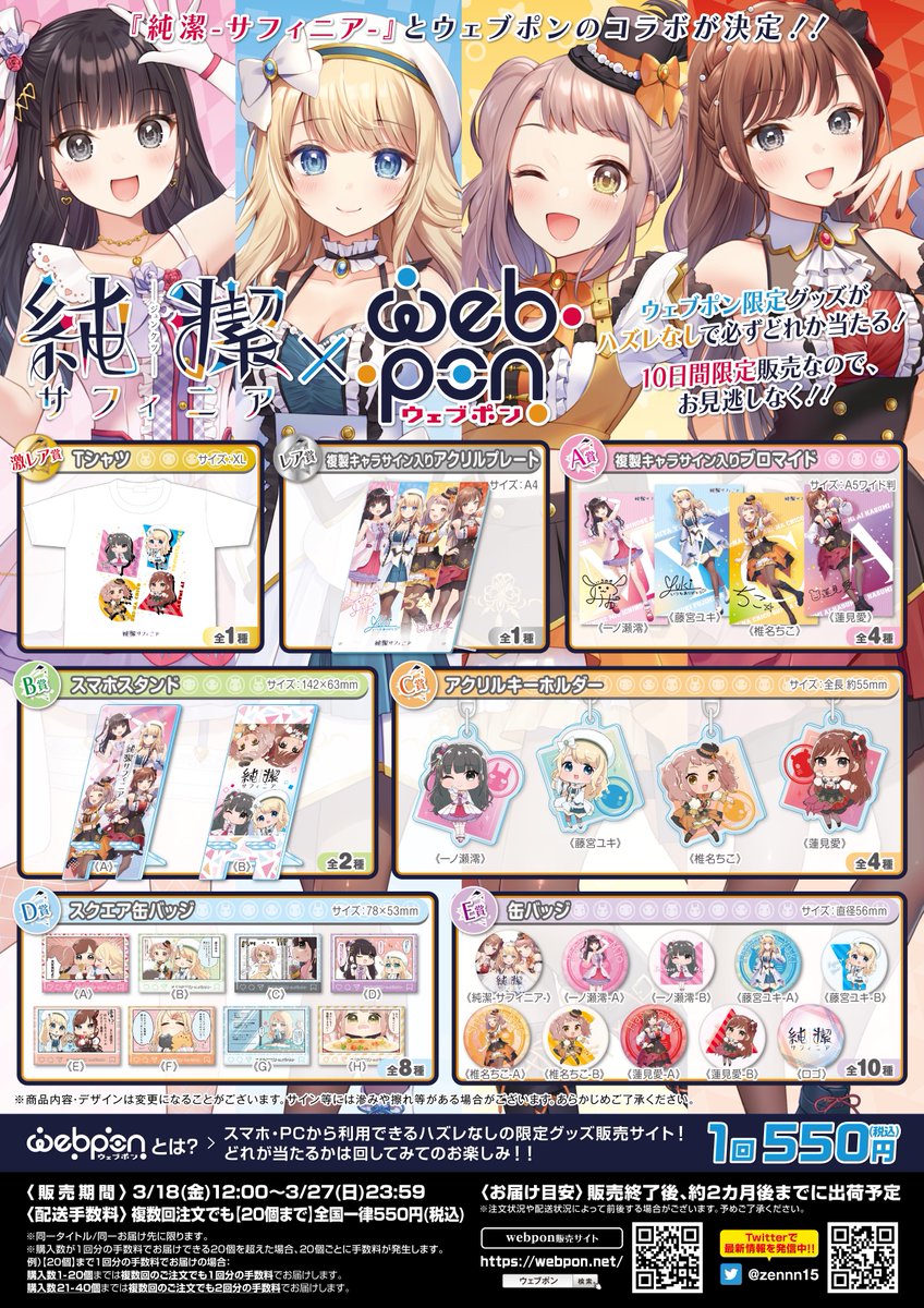 🎊#純潔サフィニア × #ウェブポン🎊 描かせていただいたみんなが限定グッズに! SDイラストグッズもかわいい💕 3/27(日)23:59 まで! 【販売ページ】webpon.net/shop/GLSF/plan…