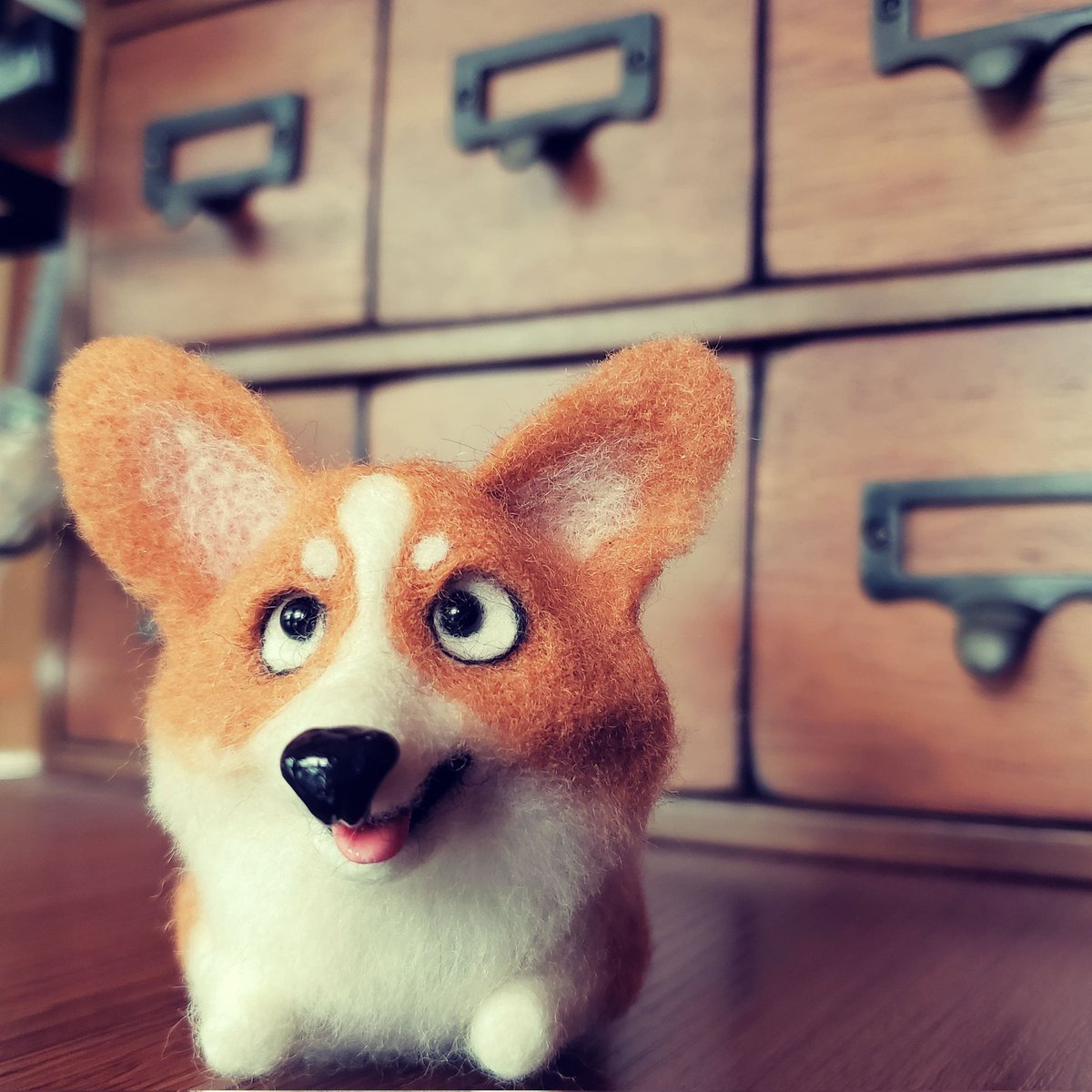 新作発表! 尻尾の長い伏せコーギーちゃん(シルクロード色) 今回は伏せでもビョーンと足を伸ばしてまるでスーパーマン気分のコーギーちゃんです。 (*´ ˘ `*)ウフフ♡ minneで販売中です。 #羊毛フェルト #ウェルシュコーギー #スーパーマン
