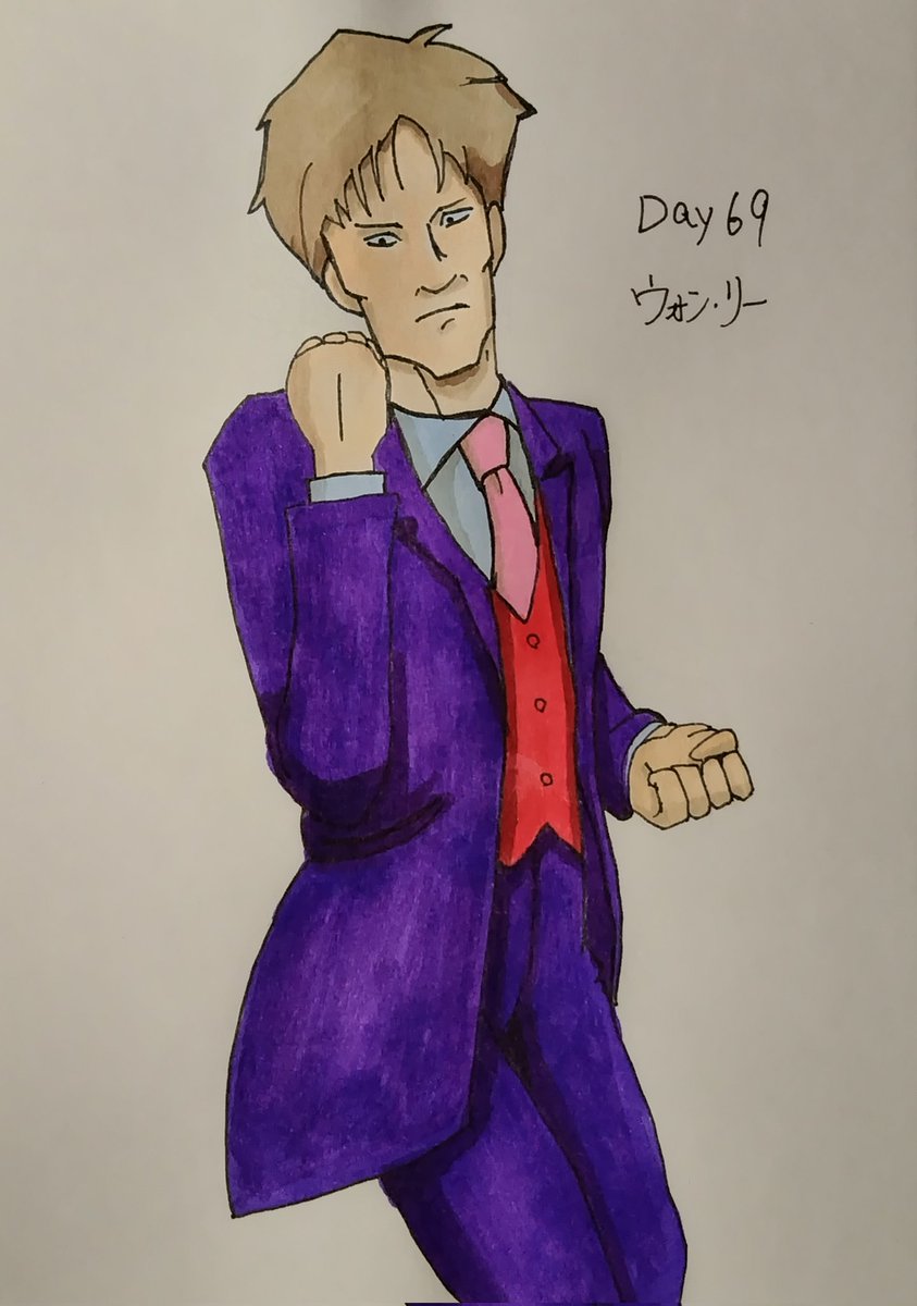 Day69 ウォン・リー 蝶の様に舞い蜂の様に刺すタイプのウォンさんになっちゃいました。元絵だと、もっとしっかり構えてます。 #100日チャレンジ #アナログ絵 #機動戦士Zガンダム #ウォン・リー