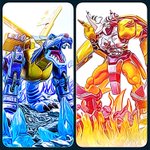 緻密な戦術を披露した後はお互いの健闘を讃え合うまでがデジカ。 #オモ写 #デジモン #digimon #デジタルモンスター #digitalmonster #ウォーグレイモン #ブラックウォーグレイモン