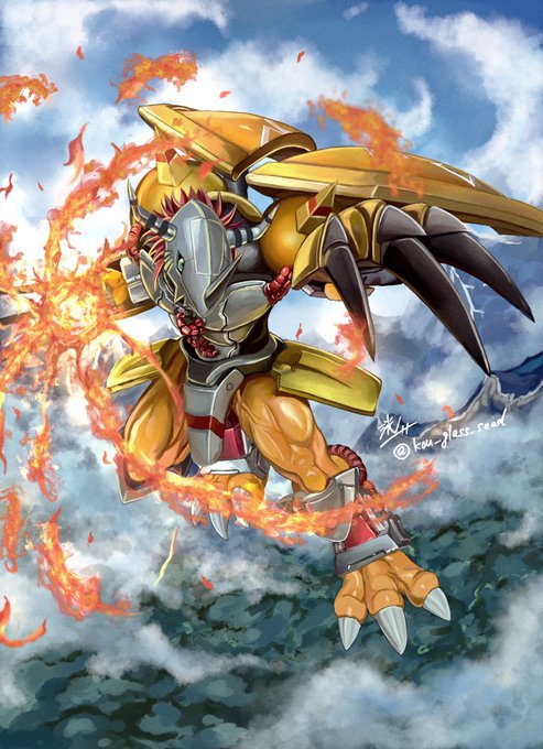 イラスト風ウォーグレイモン。 エフェクトパーツがあると余計にイラストっぽくなるんですね、勉強になります🤔 #オモ写 #デジモン #digimon #デジタルモンスター #digitalmonster #ウォーグレイモン