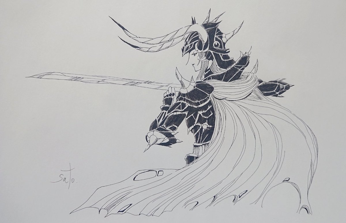 #ファイナルファンタジー #ウォーリアオブライト #落書き #イラスト ファイナルファンタジー1の主人公。 ファミコン版パッケージイラストっぽいポーズですが鎧のデザインとか適当に想像して描いてます。 ここ最近描いた落書きの中でも一番自分らしい仕上がりになりました。