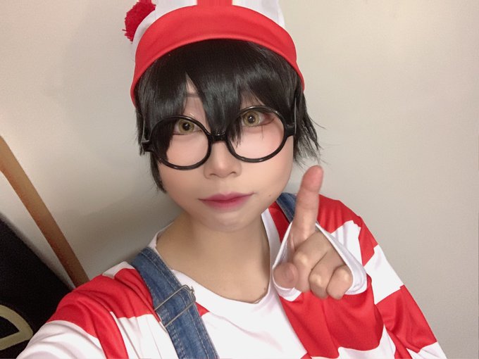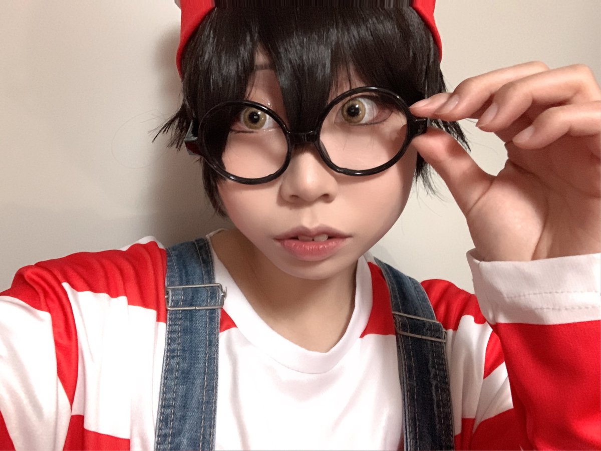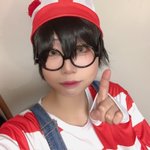 今日はちょっと早めのハロウィン🎃 カナエはウォーリーになったよ❣️ 髪がボッサボサになったら夕日が背中に当たっていい感じ📷 #ハロウィン #コスプレ #ウォーリーを探せ #halloweencostume #Halloween