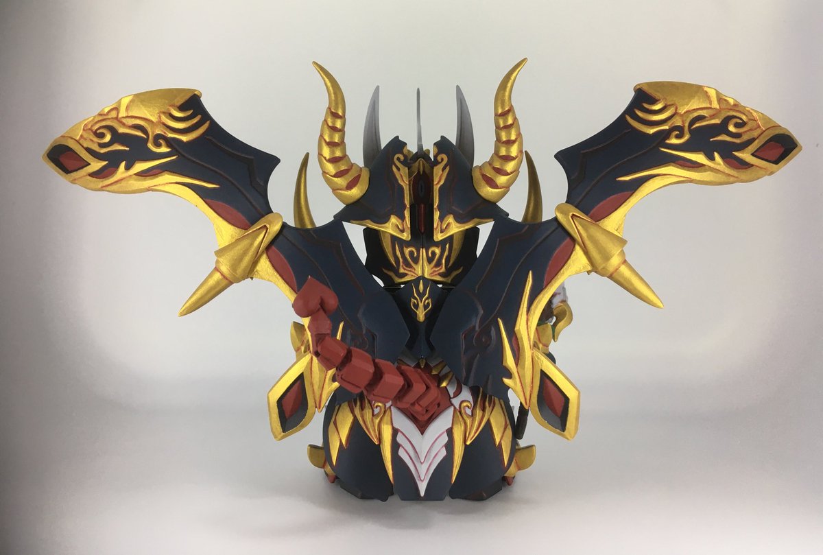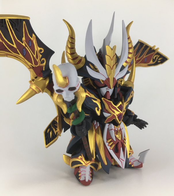 息子娘にプラモを紹介するため約20年ぶりに手をつけたのがウォーロックイージスさん(一目惚れ)でした。 写真はダークグラスパードラゴン発売に合わせて先日塗り直したものです。 羽2枚に増やしてみたらとってもいいかんじ #SDW #SDガンダム #ウォーロックイージス #ダークグラスパードラゴン