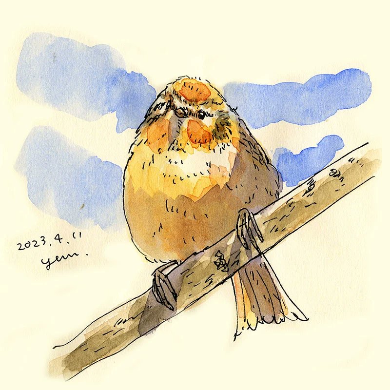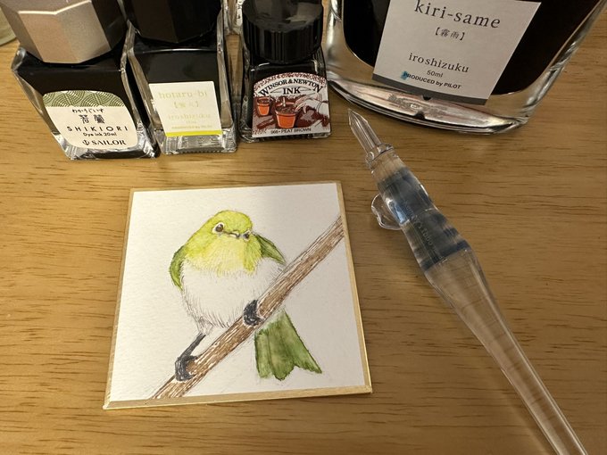 ウグイスちゃんリベンジ #ガラスペン #アナログイラスト #アナログ絵 #ウグイス #野鳥 #インク沼 #文具で描く 🐸 #鳥好きさんと繋がりたい #絵描きさんと繋がりたい #絵柄好みって人にフォローされたい