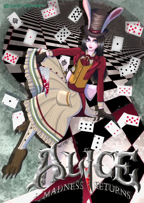 #イラスト #絵柄が好みっていう人にフォローされたい #二次創作 #ファンアート #アリスマッドネスリターンズ #ウサギ 大分遅れましたが新年あけましてうさぎ年! イラストはダークですが今年もよろしく!