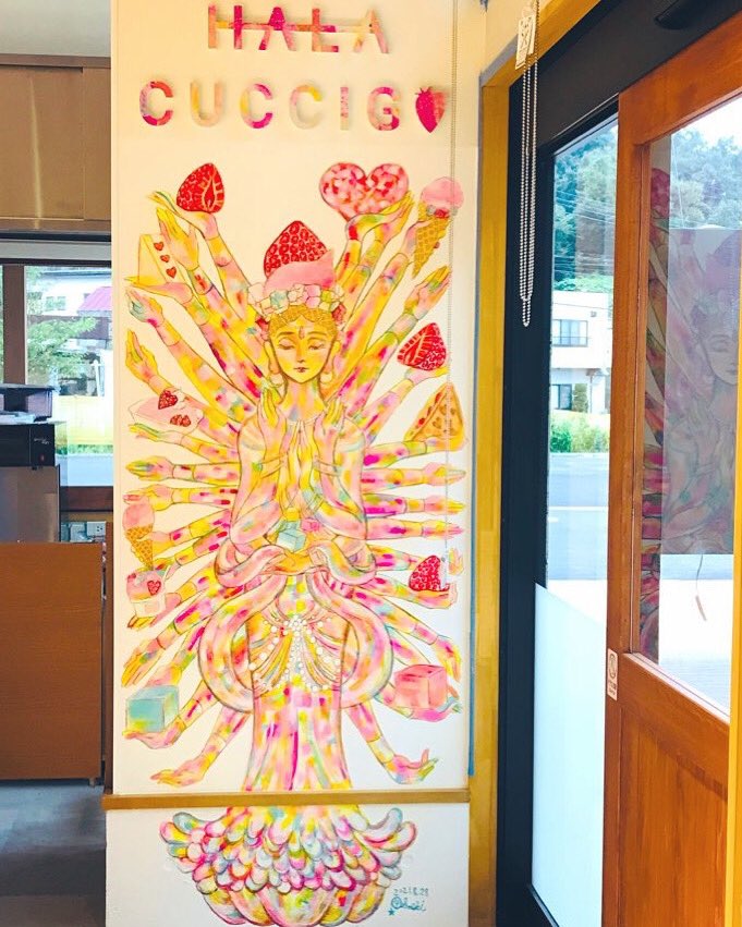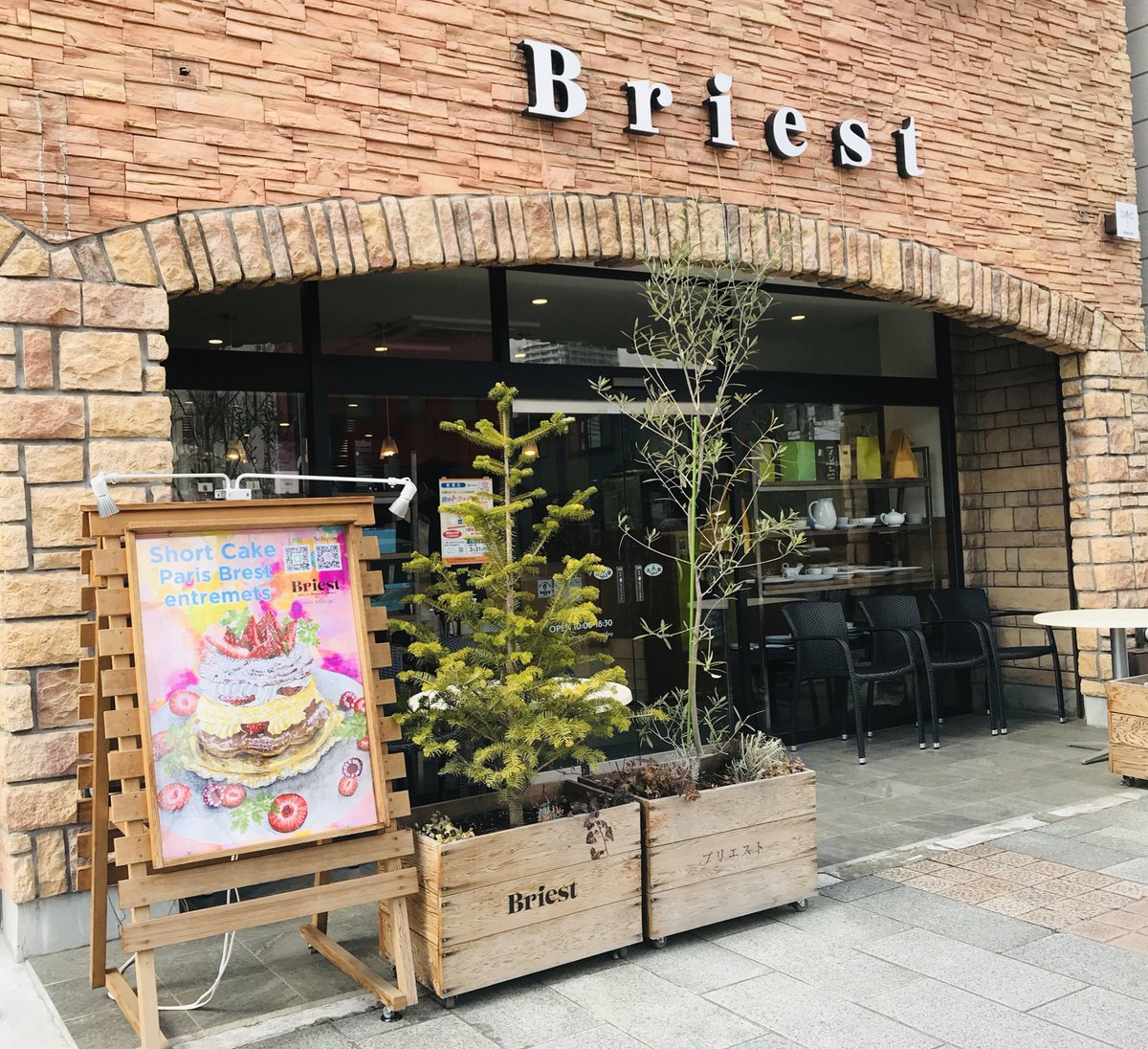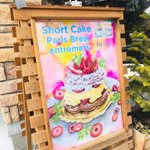 Briestさんの店頭ポスターが、 Ushimaruが描かせていただいたショートケーキのパリブレストに変わりました🍓 しかも背景も #ウシマルカラー ✨ ありがとうございます✨ twitter.com/ushimarusaeki/…