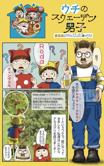 この間採ったアカスグリの実を巨大鍋で煮込んでジャムソースを作りました。ど田舎の日常ってこんなもんです… #漫画が読めるハッシュタグ #ウチのスウェーデン男子 #国際結婚マンガ #エッセイ漫画 #北欧日常漫画 #イラスト #コミックエッセイ #アカスグリ #レッドカラント #rödavinvär #Sundsvall