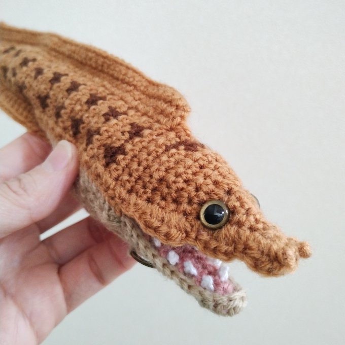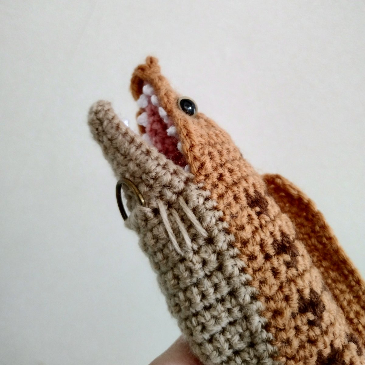 #リップケース は #ウツボ の他に #アノマロカリス と #モササウルス がおります。 本日、1期最終日は15時までー! #あみコレ勝手に応援団 #あみコレ2022 #あみぐるみコレクション2022 #あみぐるみ