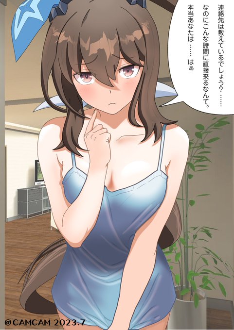 アヤベトレーナーの妄想⑥ アヤベに急ぎ伝えたい事があり、彼女の部屋へ! この時のアヤベの姿が脳裏に焼き付いて忘れられない😍 #アドマイヤベガ #ウマ娘 #ウマ娘プリティダービー #イラスト好きさんと繋がりたい