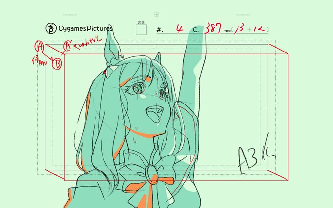 RTTT 第4話 総作監修 久武伊織さんのカットです。OPと1話とめっちゃお世話になりました!久武さんは1話の皐月賞ゴール直前のカット(あのトプロです)もやってくれてます。 ラストカット!ありがとうございました…! #ウマ娘 #ウマ娘ロードトゥーザトップ