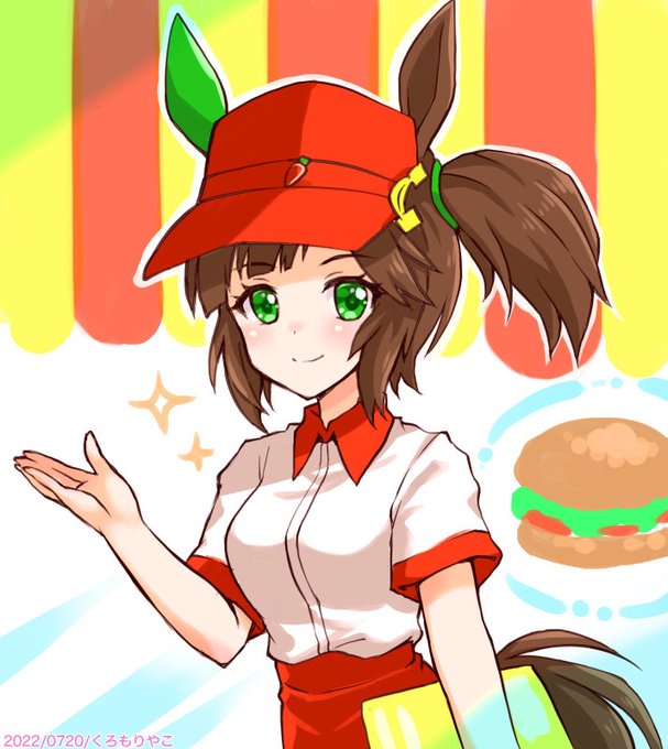 とても似合いそうなので…🥰🍔✨ #ウマ娘版深夜のお絵描き60分一本勝負 #ウマ娘版深夜のお絵描き60分一本勝負_20220720 #ウマ娘 #ウマ娘プリティーダービー お題【ハンバーガーショップのバイト】 #ハンバーガーの日 #アイネスフウジン