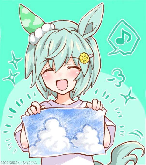 画用紙いっぱいに空の絵を描いた 小学生セイちゃんです☺️🎨📔 #ウマ娘版深夜のお絵描き60分一本勝負 #ウマ娘版深夜のお絵描き60分一本勝負_20220831 #ウマ娘 #ウマ娘プリティーダービー お題 【夏休みの宿題】 #セイウンスカイ
