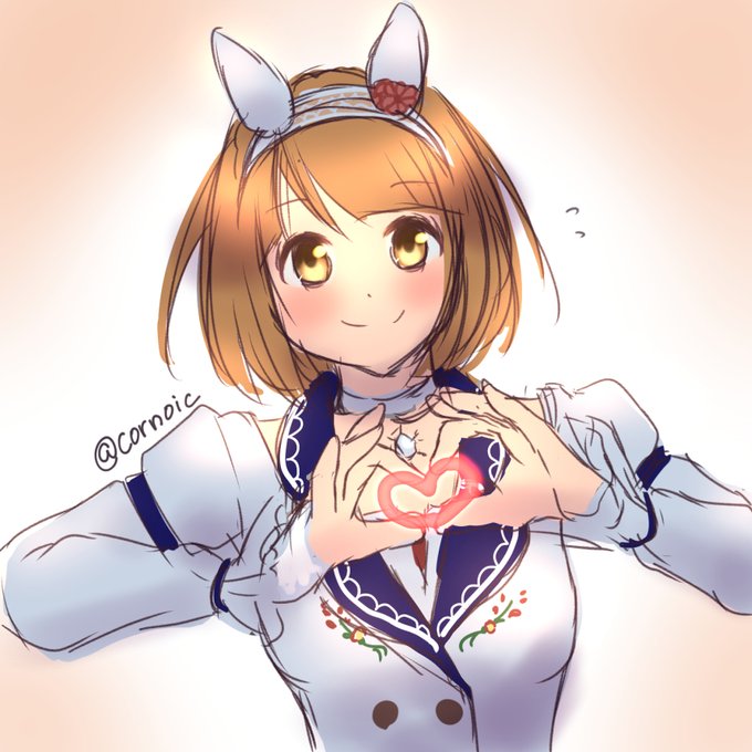 #ウマ娘版深夜のお絵描き60分一本勝負 #ウマ娘版深夜のお絵描き60分一本勝負_20220912 #ウマ娘 #ウマ娘プリティーダービー #ユキノビジン ハートをつくるユキノ❄️ 「こ、これでいがすか…?💦」