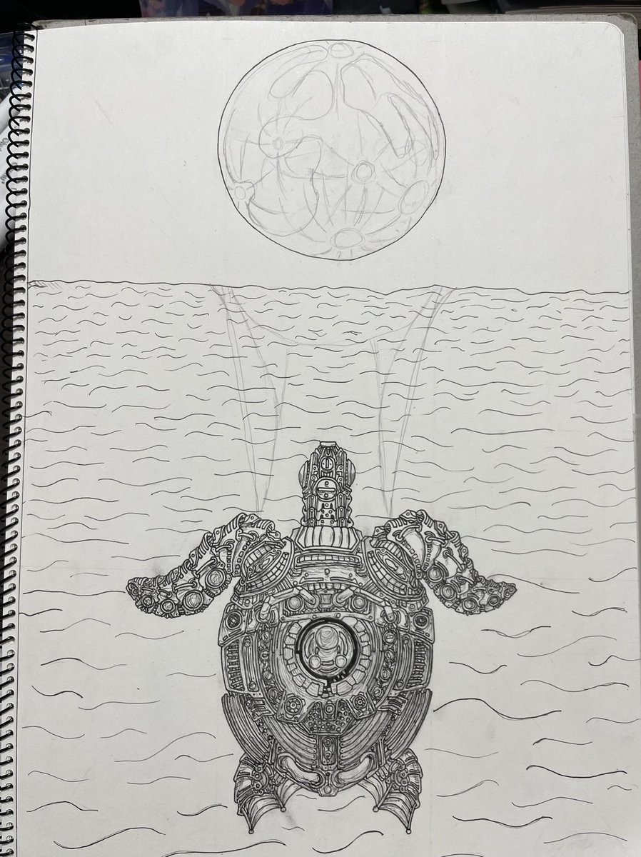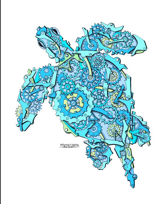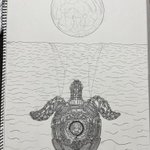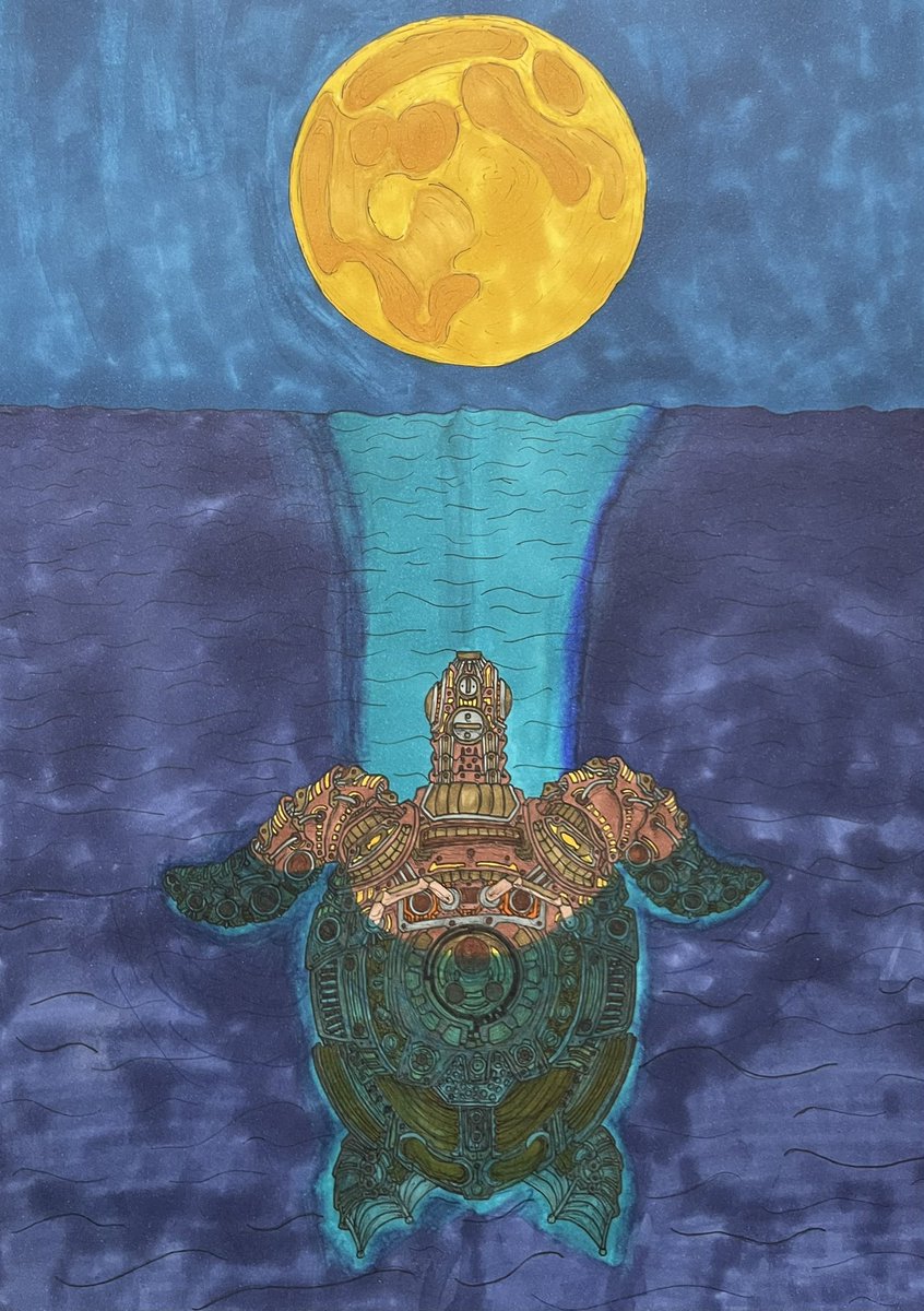 今日もお疲れ様でした✨✨ 明日は大雪になりそうです💦 お気をつけてお過ごし下さい♪ ⚙ウミガメ⚙ #創作 #スチームパンクイラスト #歯車イラスト #ペン画 #ウミガメ #絵描きさんと繋がりたい