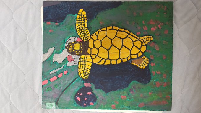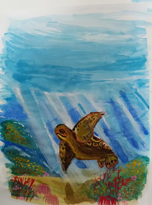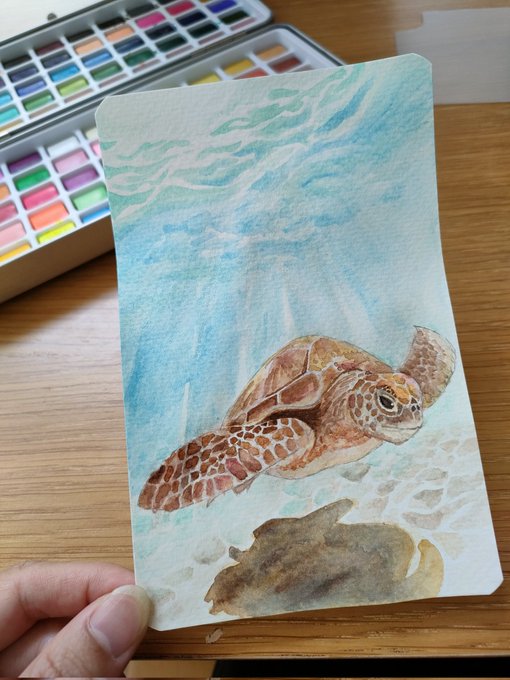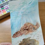 今日は猛暑。子供達も家の中。 下の子達のお昼寝中に描いてる、 まだ途中の水彩画ウミガメ。 難しすぎる。難しすぎー😭😭 #ウミガメ #水彩画 #絵描きさんと繋がりたい #絵描きさんフォロバ100