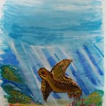 創作パステル画 「Deep SEA World~記憶ノ旋律」 本日の1枚。某ボディソープのパッケージからイメージしました。 #オイルパステル #色鉛筆 #海王区 #生物天体MAHORO #絵描きさんと繋がりたい #ウミガメ #イルカ #珊瑚礁 #みんなで楽しむTwitter展覧会