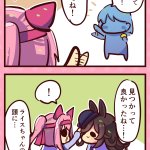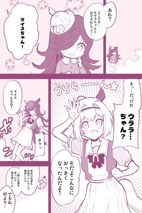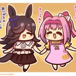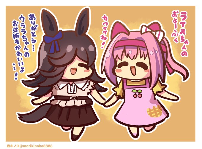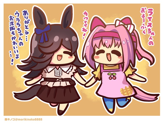 この指止まれでウララちゃんに指をパクッとされちゃうライスちゃん #ウマ娘 #ライスシャワー #ハルウララ #ウラライス #絵描きさんと繋がりたい #絵柄が好みって人にフォローされたい