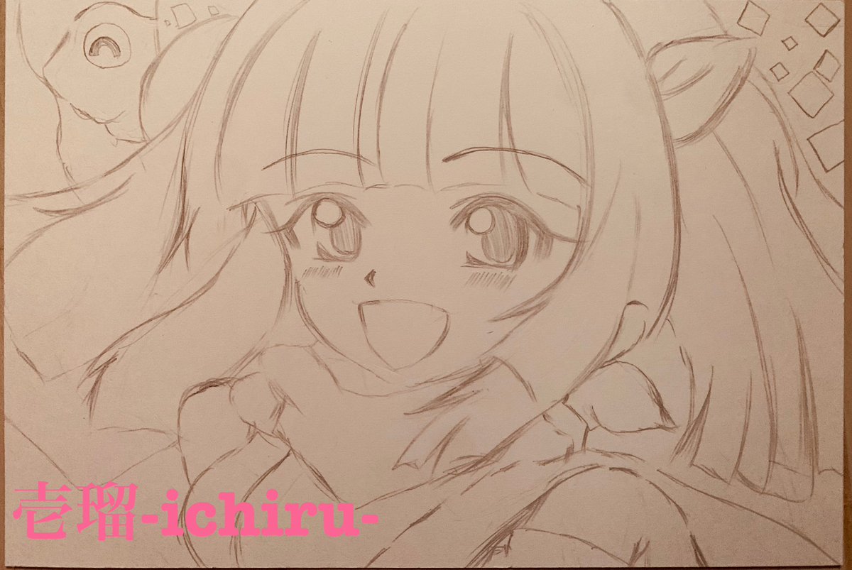 海物語のウリンちゃんの下描き完成🌺 アイコンで誰かわかると思いますが名前を壱瑠に変更しました。これからもよろしくお願いします🥺 #海物語 #ウリンちゃん #絵の世界 #イラスト好きさんと繋がりたい #みんなで楽しむTwitter展覧会 #絵描きさんフォロバ100 #アナログイラスト
