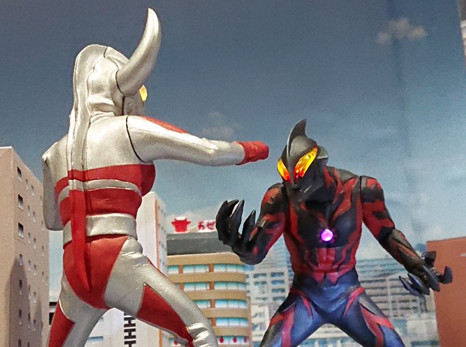 #夜のフィギュア撮影会 2/4 お題 『悪』 悪に落ちたウルトラマン【ウルトラマンベリアル】 かつてはウルトラの父の戦友だったが… 「また俺の邪魔をする気か、ケン!」 #アルティメットルミナス #ウルトラの父 #ウルトラマンベリアル #ちいさな巨大特撮