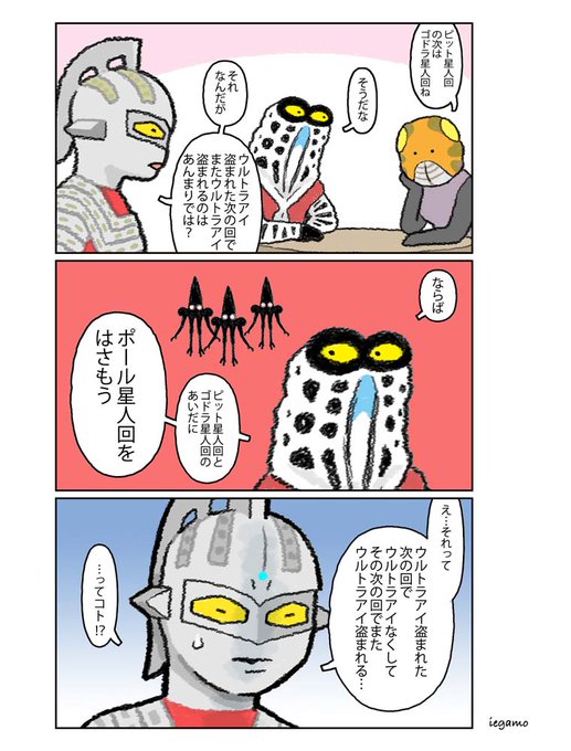#ウルトラセブン55周年 ぺガッサ星人&キュラソ星人。 (たぶん)エリート&おたずね者 ぺガッサ市の科学力って高いんだか低いんだかわからんね。 どうでもいいけどこの前、仕事で打ち合わせした人がぺガッサ星人っぽいセーター着てて、ちょっと欲しかった。 #ファンアート #ウルトラセブン