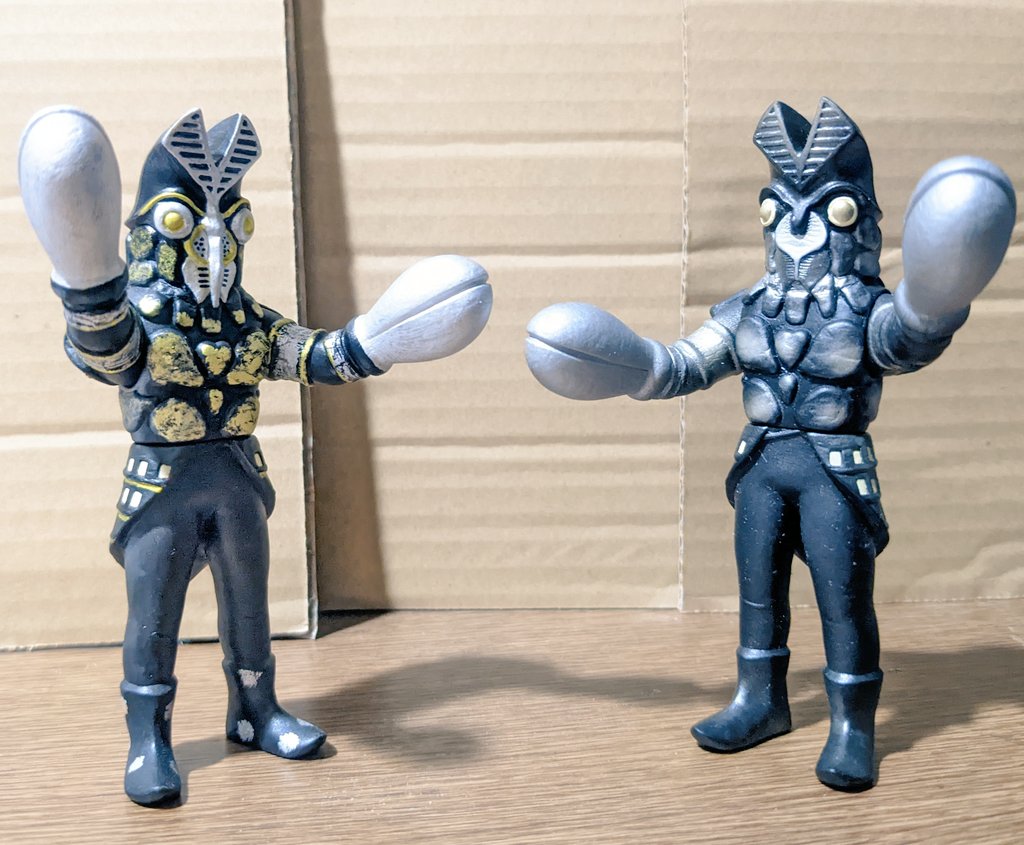 バルタン星人 (レッドマン版) レッドマン出演時のバルタン〜 限定ソフビがジャンクまとめで売られていたので…💨💨💨 最後は元になったウルトラファイト版の子と〜 #レッドマン #ウルトラファイト #バルタン星人 #あなたのソフビ紹介 #ソフビ改造 #造って遊ぼ #ウルトラフィギュア改造同好会