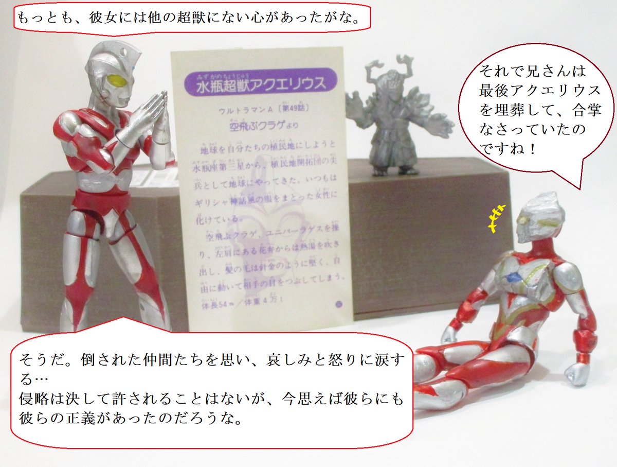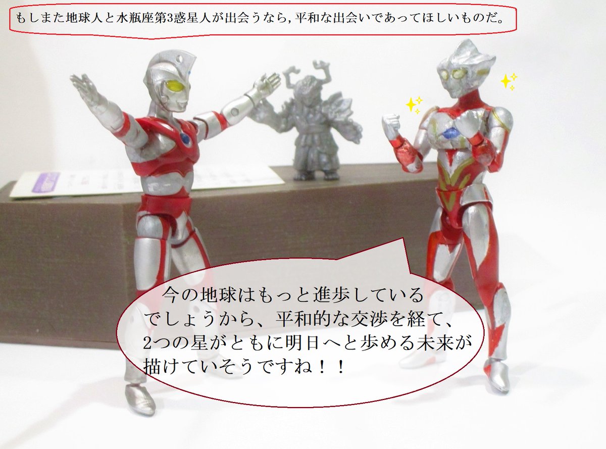 おはよ #ウルトラマンA50周年 本日は第49話「空飛ぶクラゲ」放送日。 ある夜地球へ侵入した水瓶座第3惑星人。その先兵アクエリウスはユニバーラゲスを神,自身を神の使いだと村人を洗脳し,地球植民地化の為暗躍! #ウルトラマンエース #ウルトラマンA #オモ写 #toyphotography #ウルトラマンビート