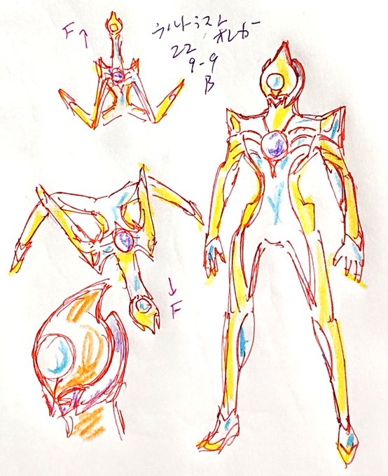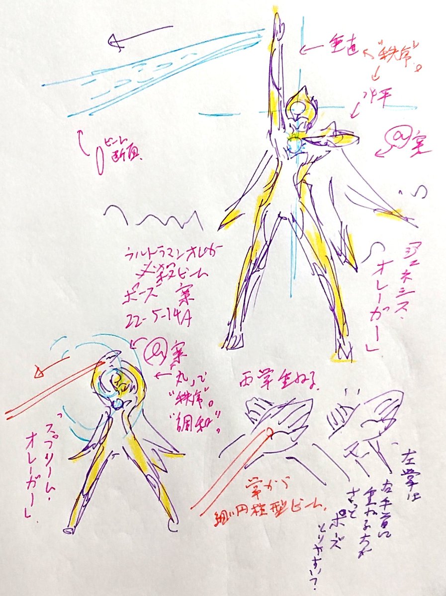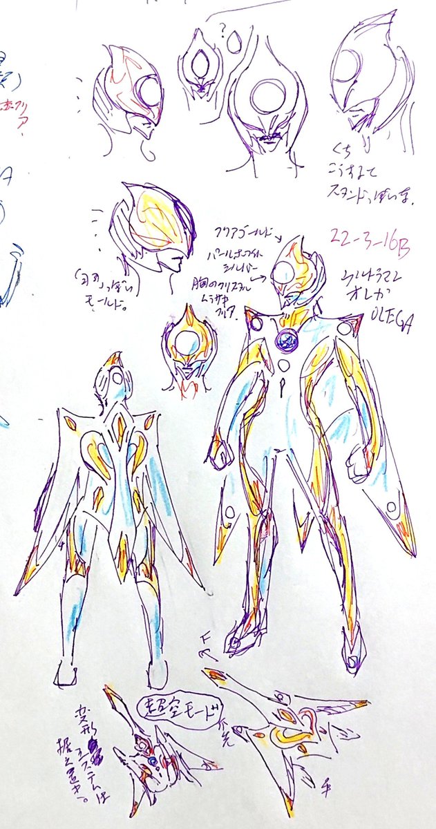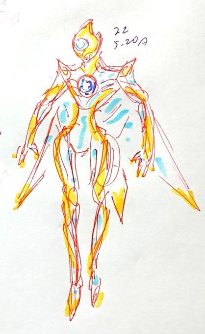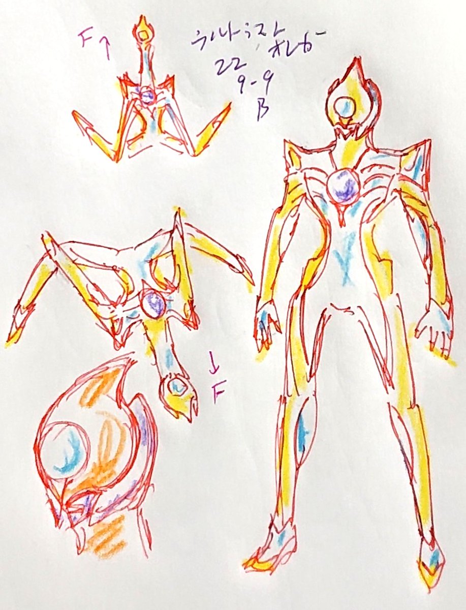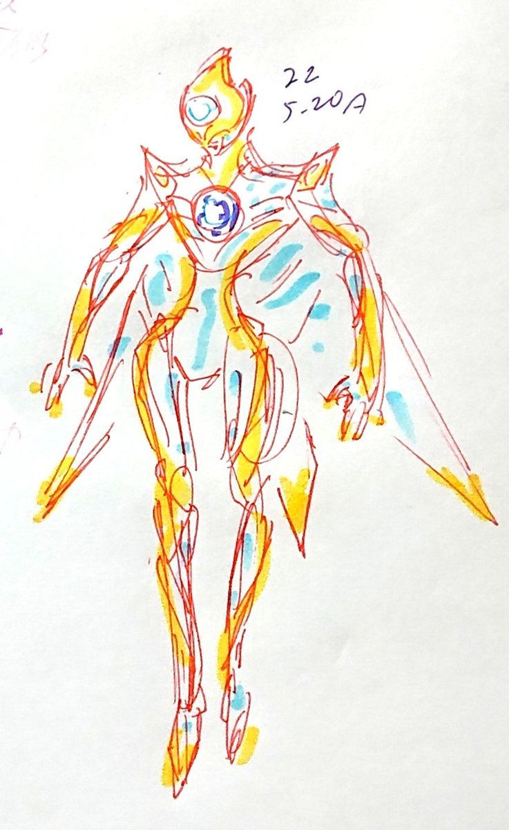 #オリトラマン 『#ウルトラマンオレガ』 案、メモ。 マントとか無しにして、 メカ的ギミックで 飛行形態に変形。 『ウルトラマンは 進化の果てに 生物でも無生物でも なくなっている』解釈。 (アイスラッガーも正当化できる?)