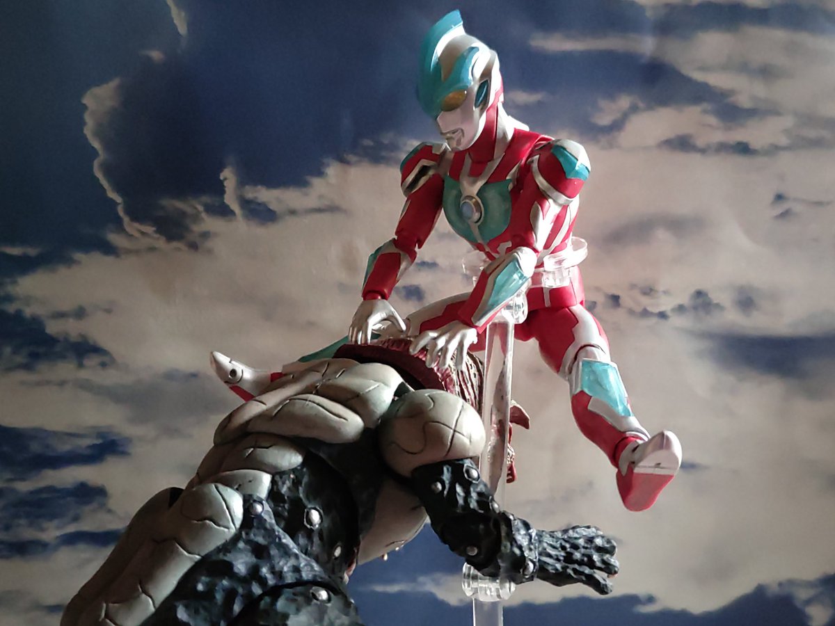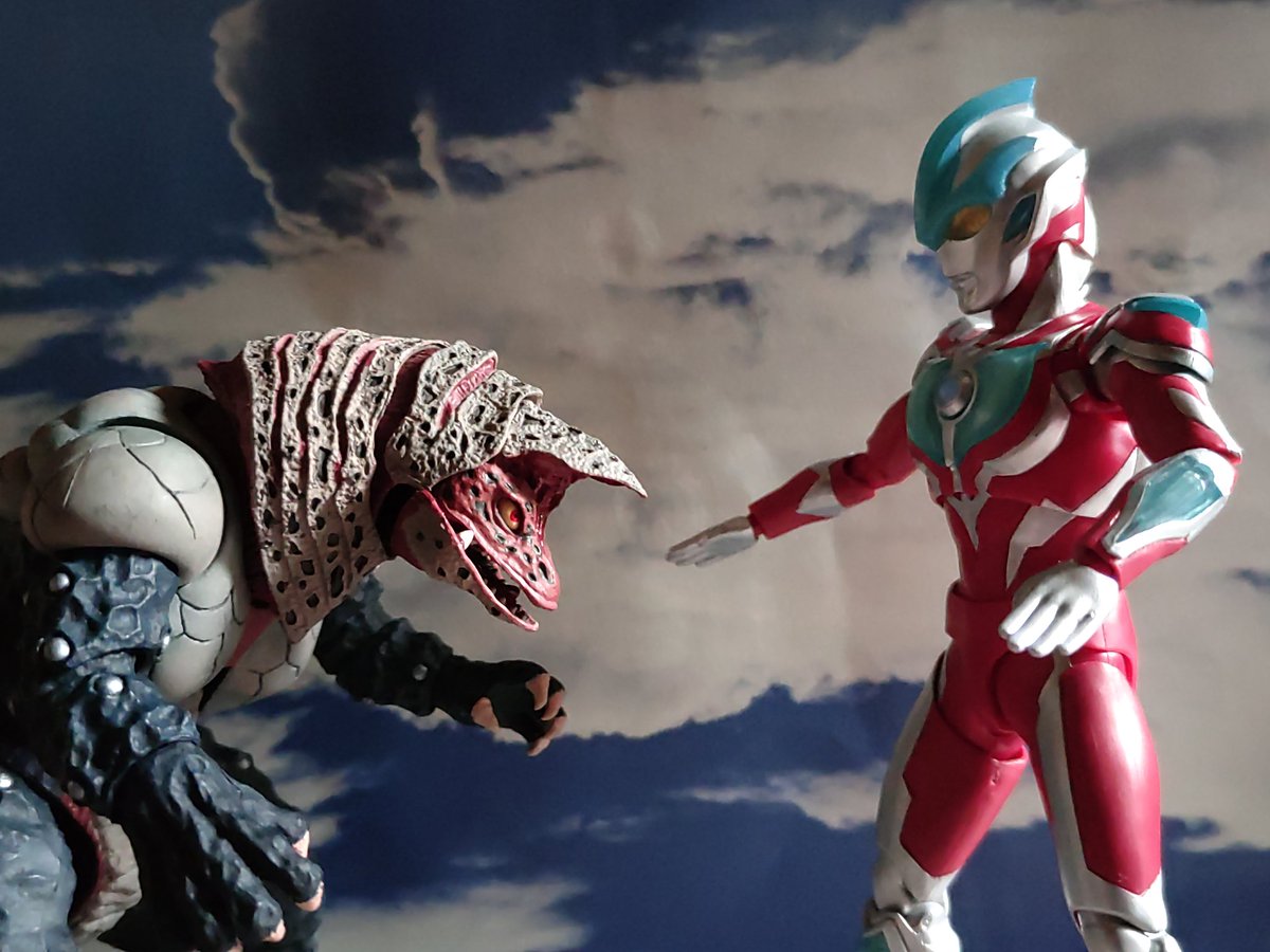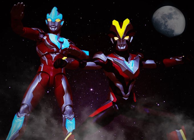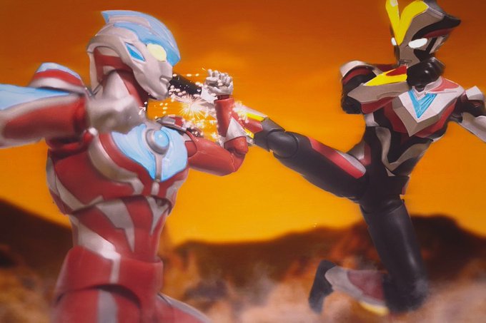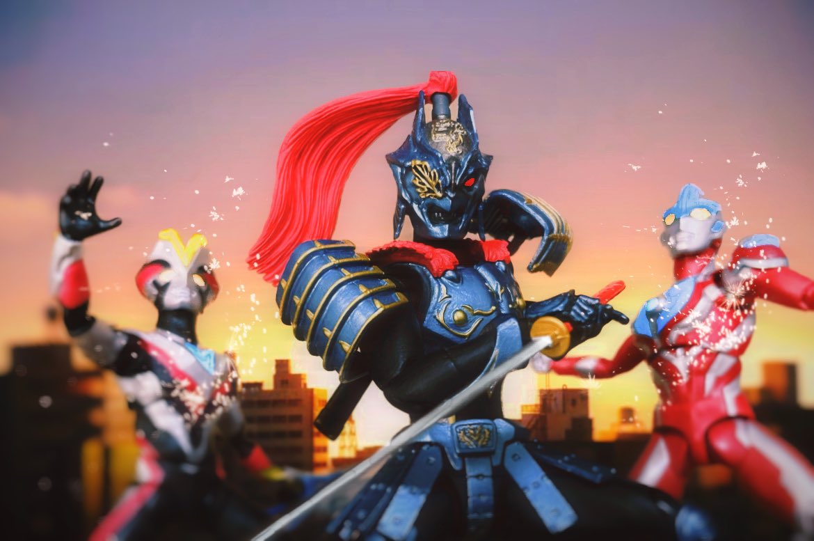 #夜のフィギュア撮影会 お題:導 過去 ギンガの時はあんな姿になっても何気にヒカルや美鈴たちを導いてたと思うタロウ。 #ウルトラマンタロウ #ウルトラマンギンガ #フィギュア撮影友の会 #超動 #ちいさな巨大特撮