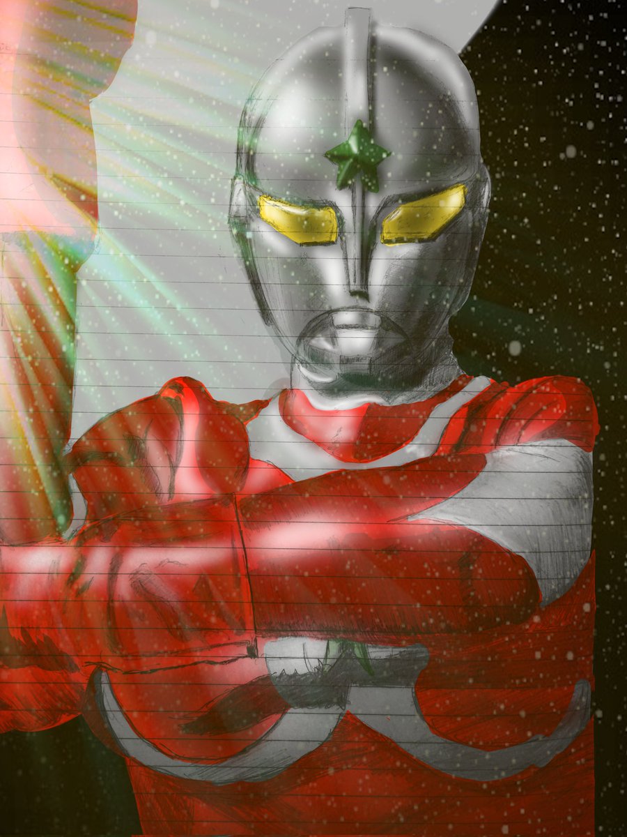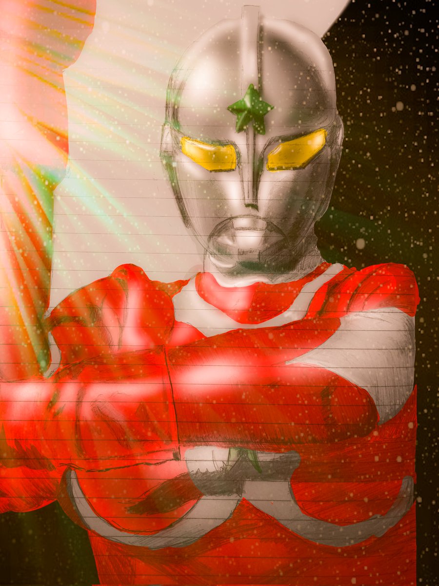 ザ★ウルトラマンより、ウルトラマンジョーニアスを描きました。 ルーズリーフに描いた模写をibispaintで塗り、エフェクトも加えました。 今のリニューアルスーツも格好良いのですが、昔の実写版スーツも好きです(*'-`) #イラスト練習中 #ウルトラマンジョーニアス