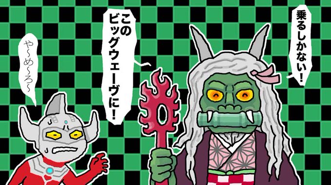 オニバンバ登場48周年だって。 「乗るしかない!このビッグウェーブに!」 #ウルトラマンタロウ #オニバンバ #ファンアート ウルトラシリーズってみんなそうだけど、タロウは特に、(敵も味方も)科学と魔力と超能力と体術の境が曖昧だなと思たよ。