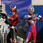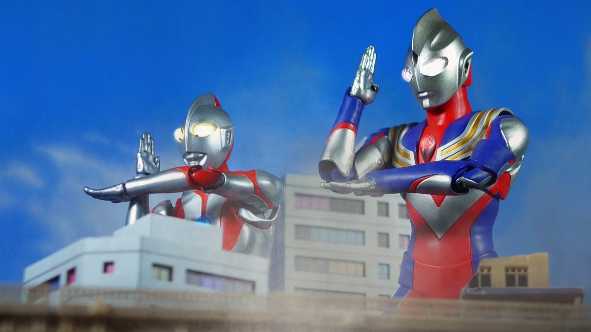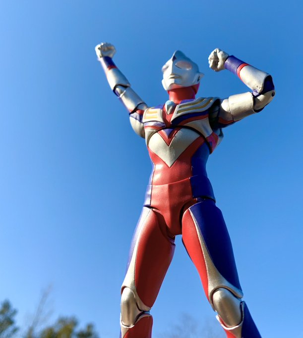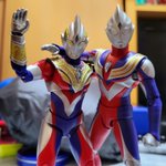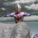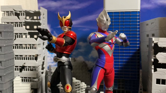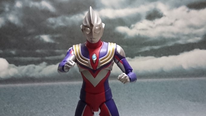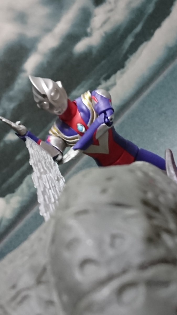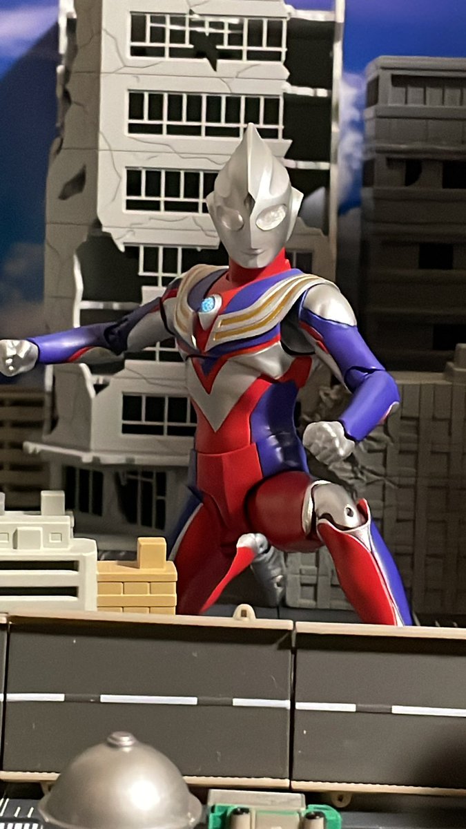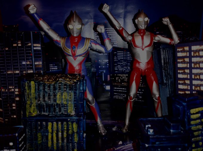 #夜のフィギュア撮影会 お題:歌 主題歌が流れる中、繰り広げられた最終決戦。それは四半世紀前の今日の事であった。 #ウルトラマンティガ #フィギュアーツ #ちいさな巨大特撮 #ウルトラマンティガ25周年