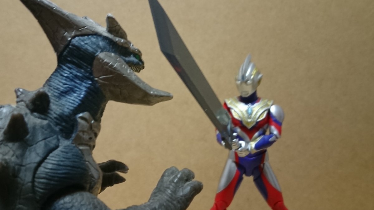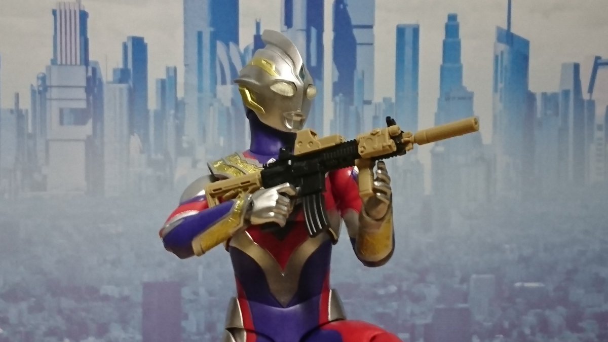 #夜のフィギュア撮影会 早め お題:フリー 過去 娘ユナを守る為、父ミツクニはガッツウイングを起動させた! #ウルトラマントリガー #ウルトラアーツ #フィギュアーツ写真部 #ちいさな巨大特撮
