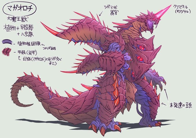 冬コミ新刊トリガー本用にメツオーガとメツオロチを描いています(ほぼ完成)。この両者はご存知のようにリデコ怪獣でありながらリデコ元との関連性がほぼ無い(言及されない、関連付けが困難)のが悩みの種ですが。こちらはリデコ元のマガオロチ(昔描いたものの再掲) #ウルトラマントリガー