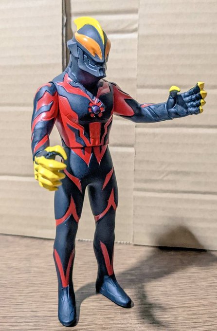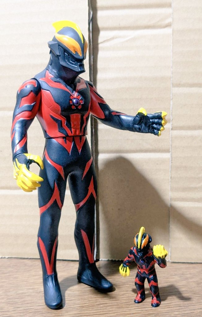 配色が似てる(ベリアルは黒じゃなくてちょっと灰色っぽいけど) あんまり敵役のフィギュア買わないからベリアルにとっては貴重な後輩 カルミラさん?彼女はヒロインでしょ? #オモ写 #ウルトラマンベリアル #モンスターX