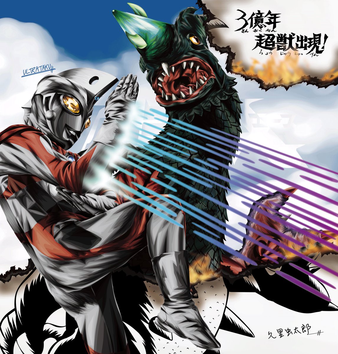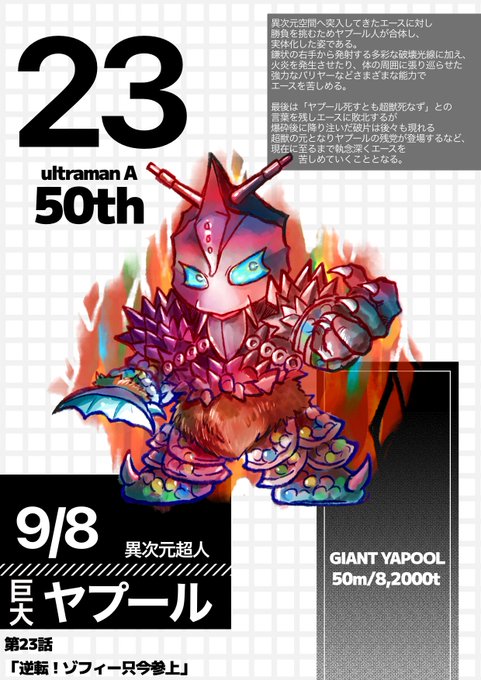 #ウルトラマンA50周年 [太陽の命 エースの命] 50年。 残酷!非道!無慈悲!ムルチ!三枚おろし! ムルチ…テリーマンが新幹線の線路から助けた仔犬くらい唐突&わかりやすい役割を負った登場やな… 何度みても新鮮にグロイ。#ファンアート #ドラゴリー
