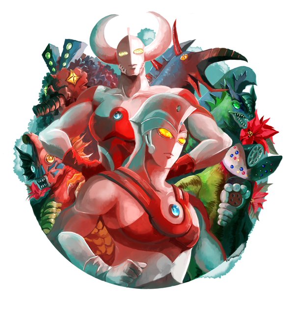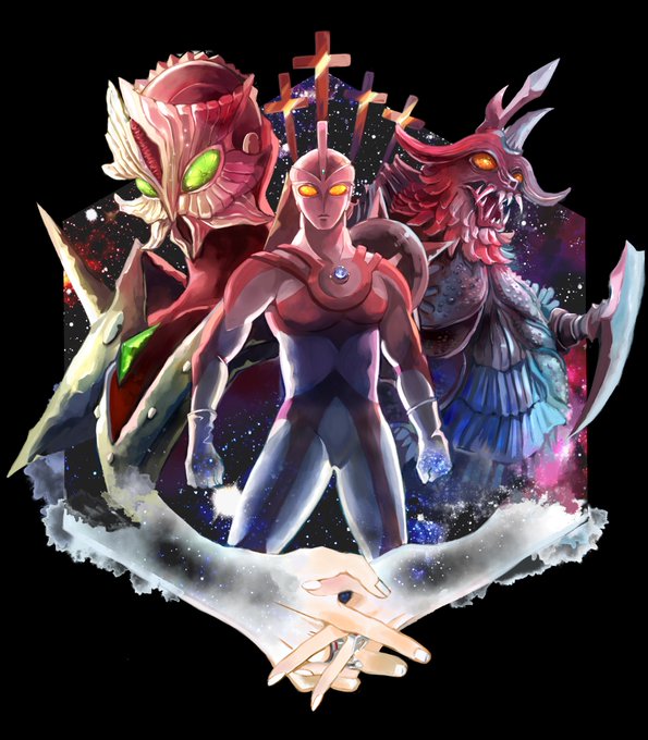 #ウルトラマンA50周年 【ちょうじゅうステップワンダバダ】inチョージュー星 元々はヤプールが実験場にしていた星。ヤプールがワンダバダされた後、解き放たれた超獣達は大騒ぎ、毎日が無法地帯…みたいな話をやってほしい50周年だし。#妄想 #ファンアート