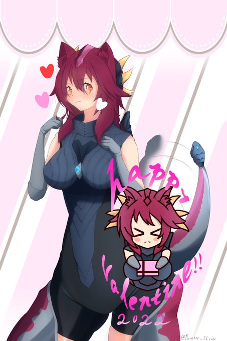 バレンタインのイラストにウルトラ怪獣擬人化計画のガーディーちゃん描いたよ!! ケモ耳可愛い!好き! 赤い髪も綺麗!好き! バレンタインは昨日だって?一日ぐらい誤差だよ誤差 #ウルトラ怪獣擬人化計画 #怪獣娘